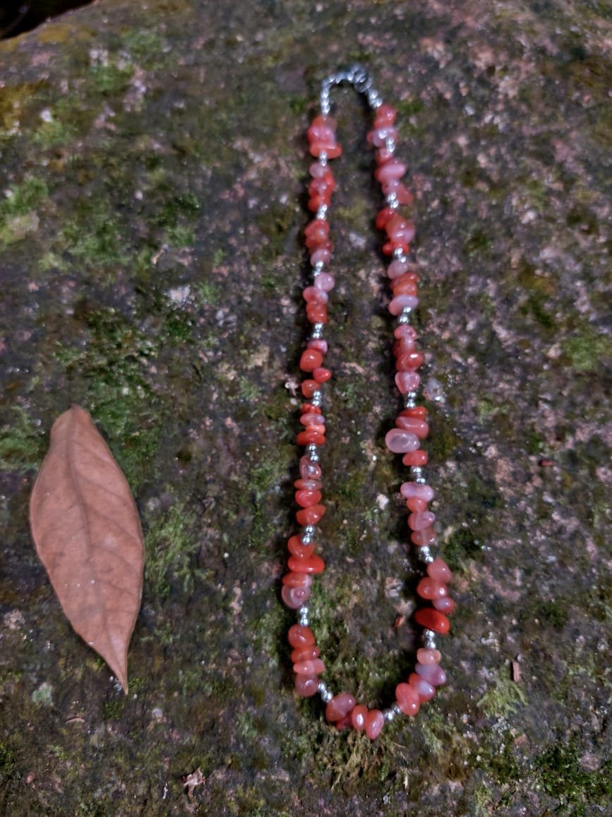 O Colar de ÁGATA DE FOGO é uma criação exclusiva da Parêia Pratas, onde arte e natureza se unem em perfeita harmonia. Feito integralmente à mão, cada peça é composta por cascalhos irregulares de pedras naturais, selecionados com extremo cuidado.
