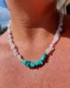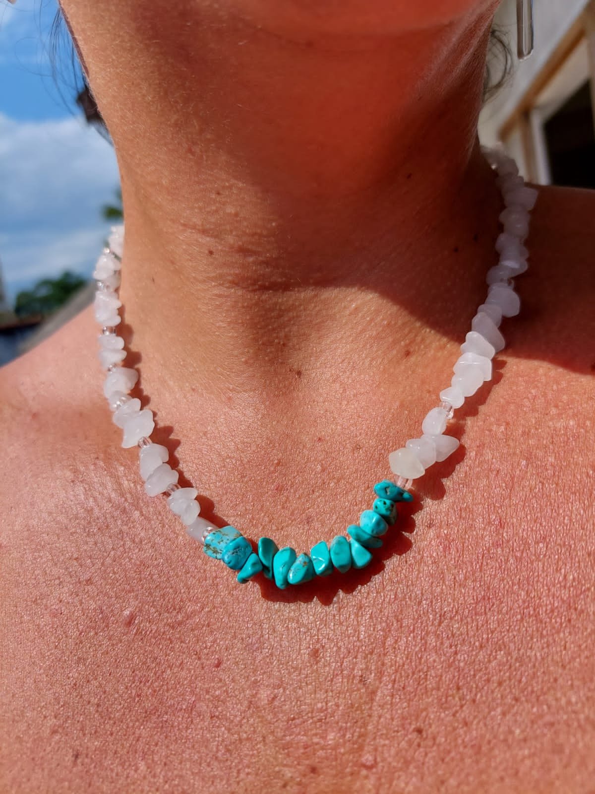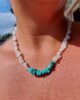 O Colar CARIBE é inspirado na natureza e é composto pelas pedras naturais Quartzo Branco e Howlita Turquesa uma criação exclusiva da Parêia Pratas, onde arte e natureza se unem em perfeita harmonia. Feito integralmente à mão, cada peça é composta por cascalhos irregulares de pedras naturais, selecionados com extremo cuidado.