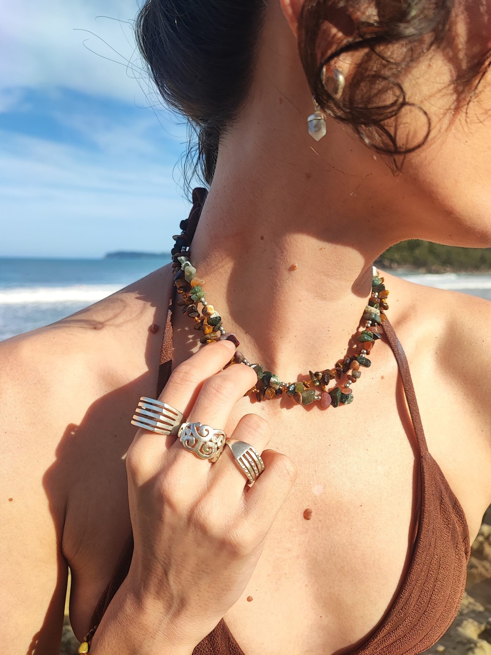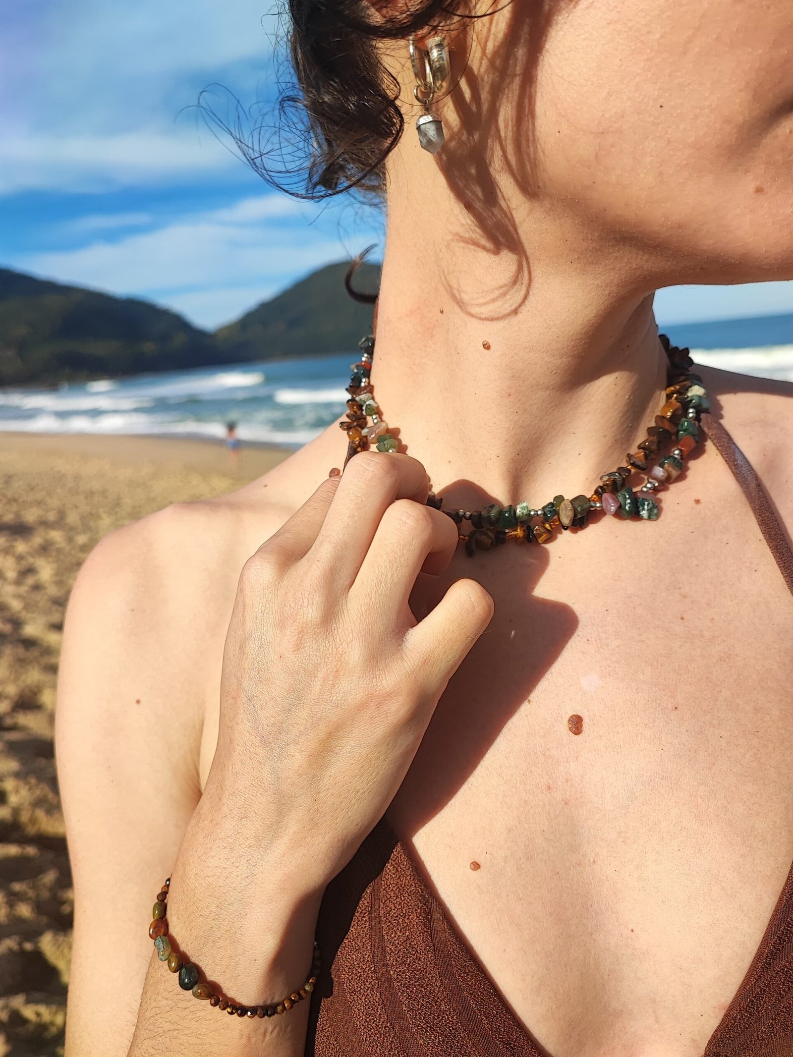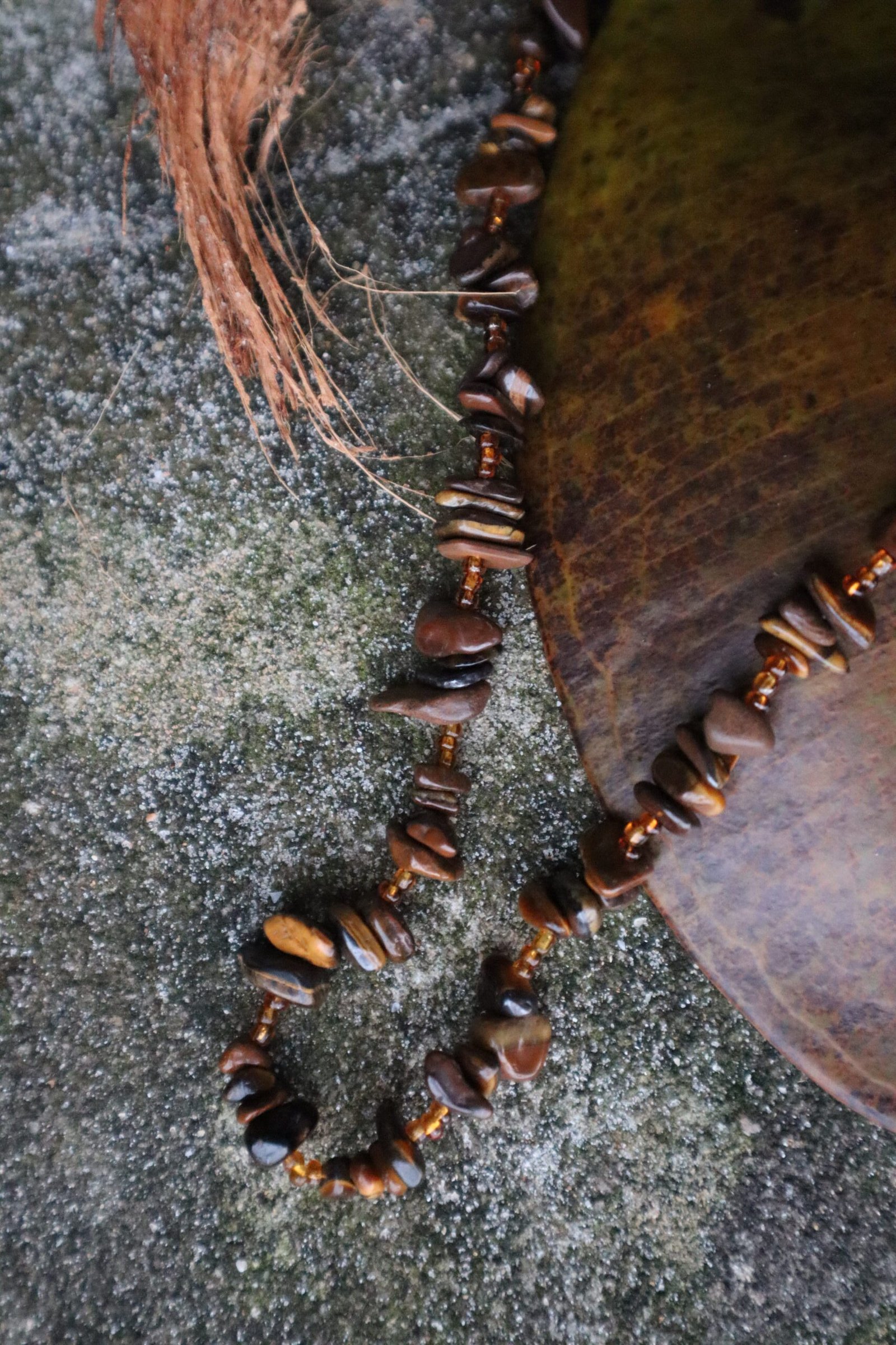 O Colar de OLHO DE TIGRE é uma criação exclusiva da Parêia Pratas, onde arte e natureza se unem em perfeita harmonia. Feito integralmente à mão, cada peça é composta por cascalhos irregulares de pedras naturais, selecionados com extremo cuidado. Cada detalhe traduz a essência de um trabalho realizado com alma e dedicação.